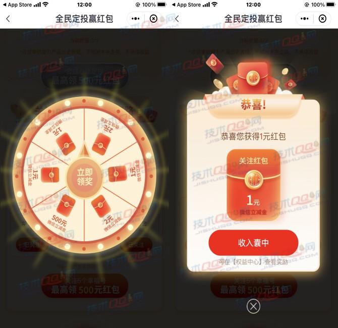 关注5个幸福号最多领取5个红包,必得1-500元微信立减金,亲测5个1元秒到微信卡包