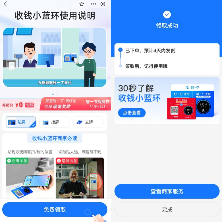 支付宝0亓领碰一下支付小蓝环
