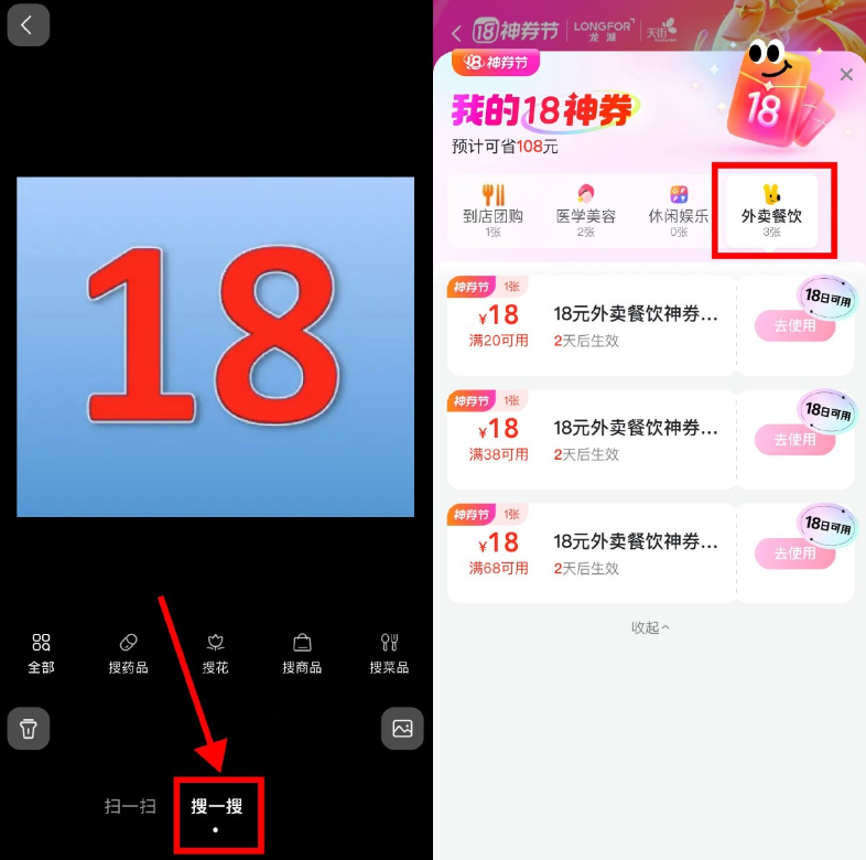 美团扫数字18抽取18亓外卖券