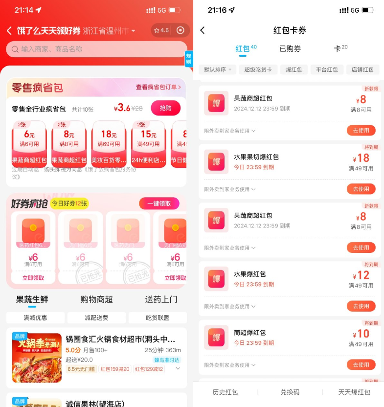 饿了么0.01亓抢商超红包券包
