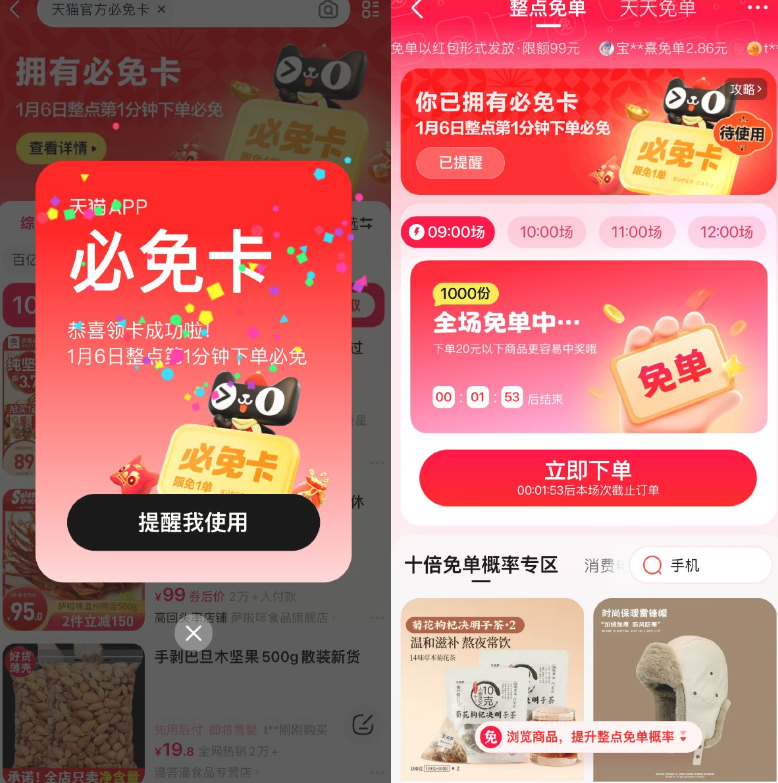 天猫年货节领必免卡必得免单