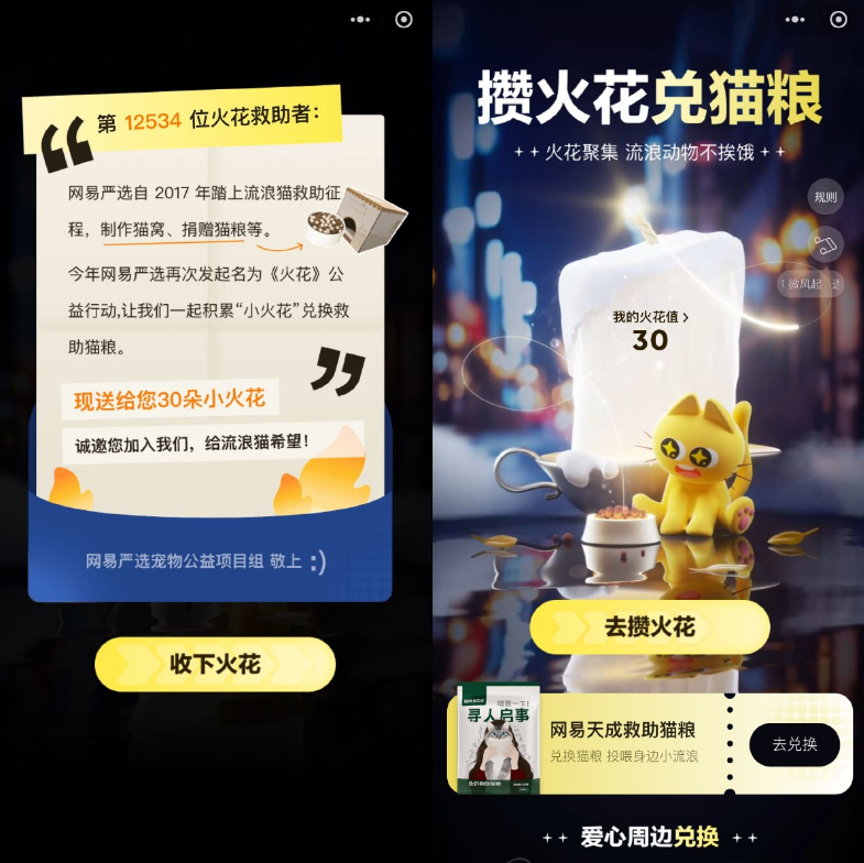 网易严选攒火花兑换爱心猫粮