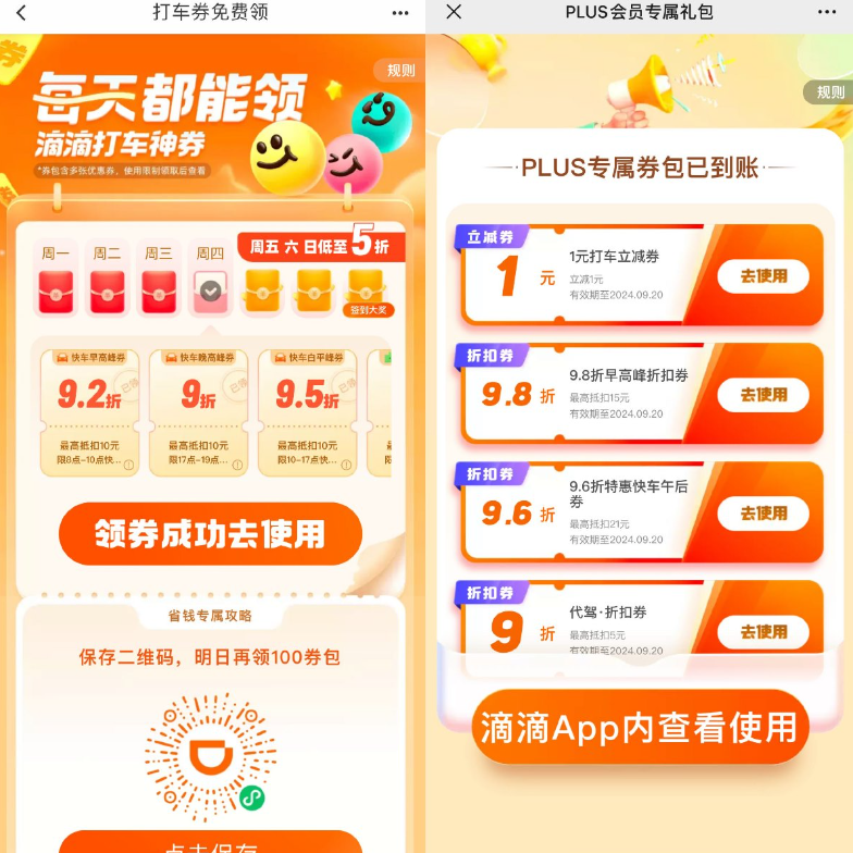 滴滴打车每日各种优惠券合集
