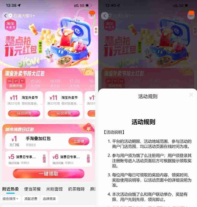 淘宝整点抢22-11亓饿了么神券