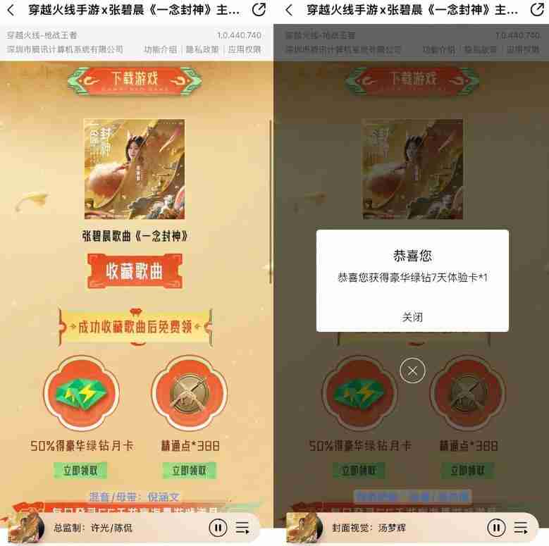 QQ音乐收藏歌曲抽7~30天绿钻