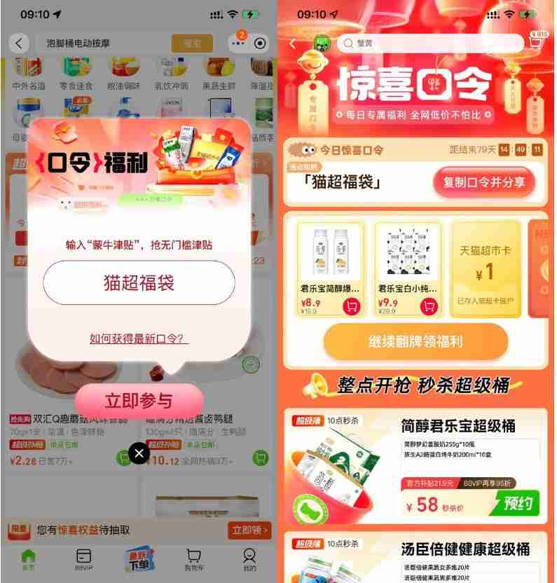 淘宝惊喜口令抽取天猫超市卡
