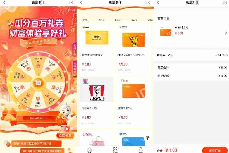 浙江农行抽取2~1000亓抵扣券