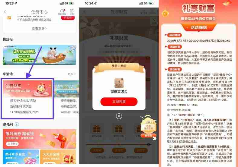 工行礼享财富抽3个1亓立减金