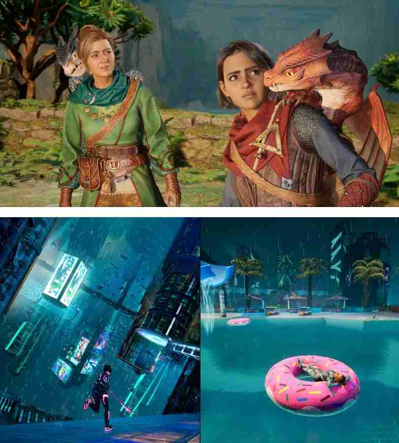 深入《双影奇境》的多重世界,体验惊心动魄的时刻。这是由 2021 年度最佳游戏《双人成行》工作室打造的又一款创新合作类动作冒险游戏。米欧和佐伊是两位风格截然不同的作家,她们一个擅长科幻小说,另一个专注于奇幻题材。被骗进入一台意在窃取创意的机器后,她们陷入了自己创作的故事之中。她们必须相互依靠,保护自己的记忆不受侵害,进而赢得自由;同时她们还必须共同努力掌握各种技能,在科幻与奇幻的世界间穿梭,在意外萌生的友情中共同克服挑战。
