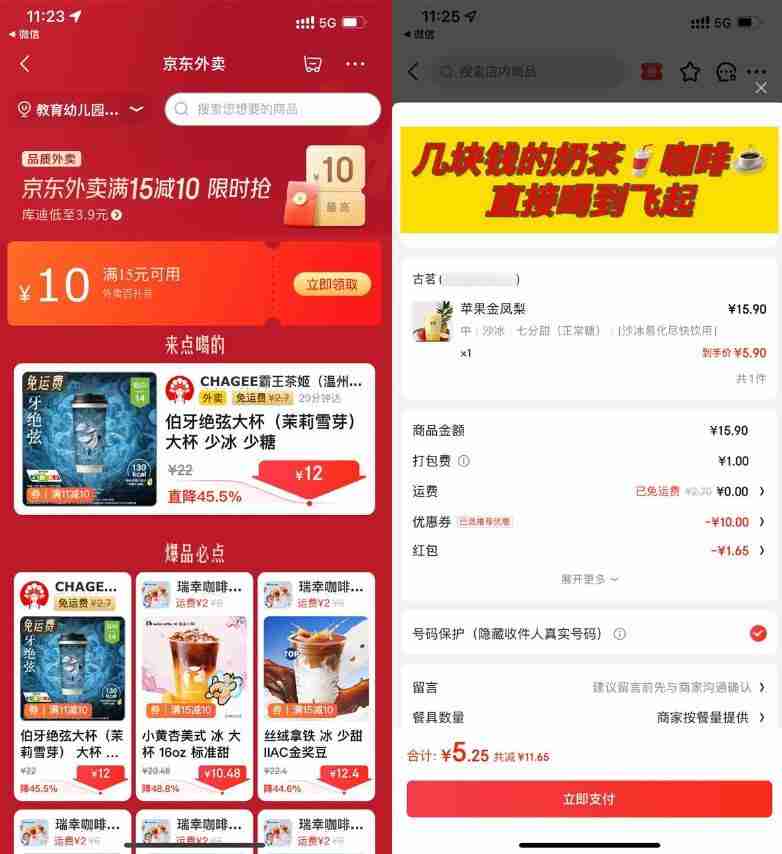 京东打开活动->直接领15-10亓外卖券,不管是点饭还是点奶茶咖啡,统统都可以用!