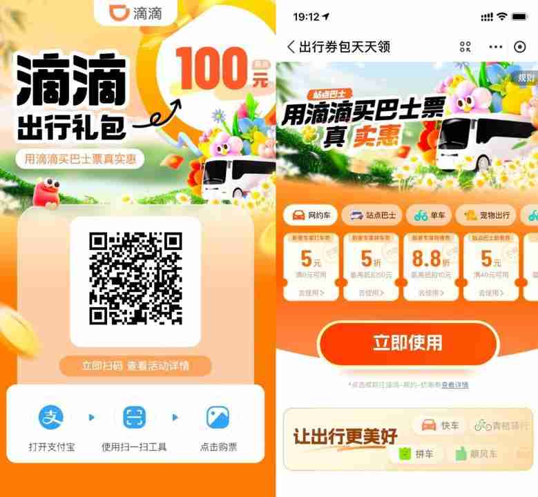 滴滴站点巴士补贴领出行券包
