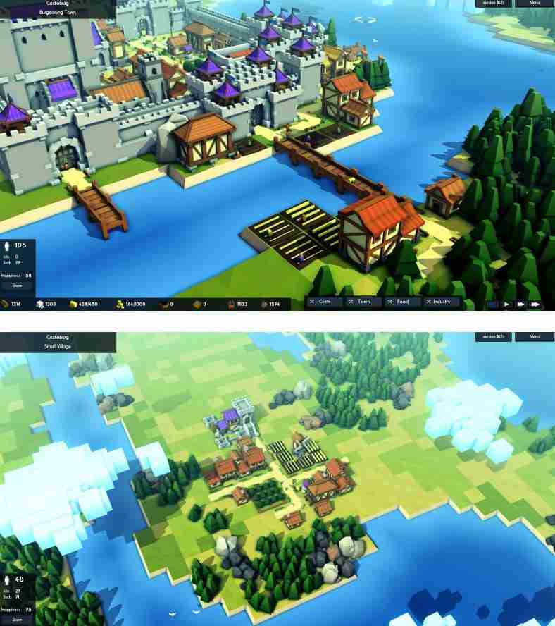 《王国与城堡》是受《放逐之城》、《模拟城市》、《要塞》等作品启发而制作的一款模拟建造类游戏。玩家在游戏中可以建立自己的王国,在充满活力和危险的世界生存,小心维京海盗、野兽袭击你的王国,并可以训练军队攻打其他国家。