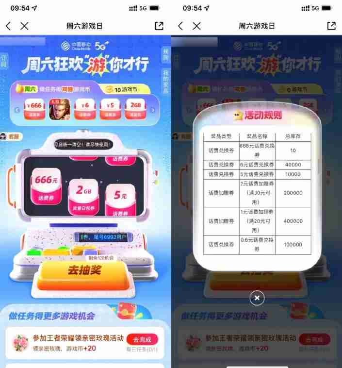 移动用户抽0.6~666亓话费券