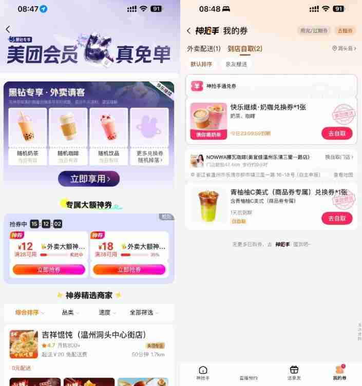 美团开工日直接领奶茶免单券