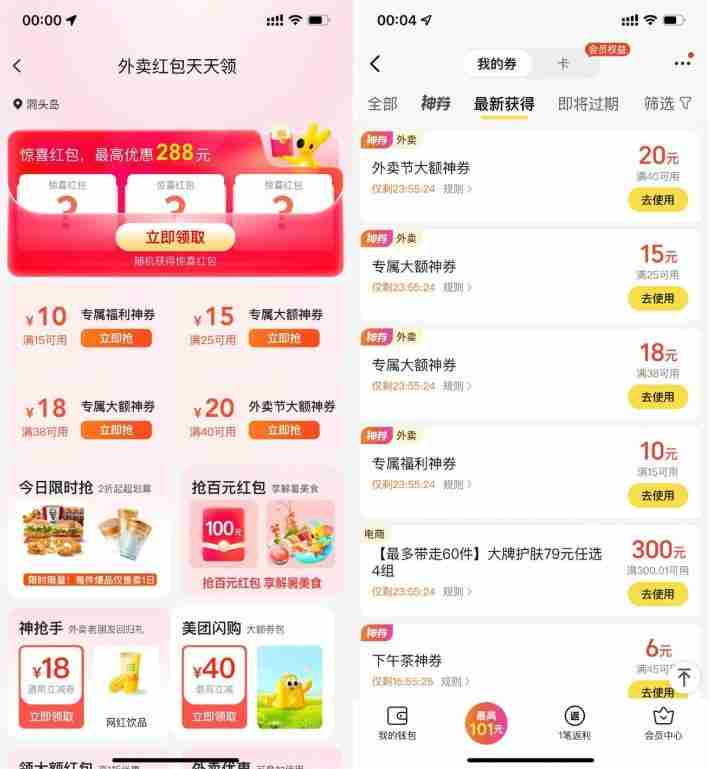 美团每天领取不限量大额神券