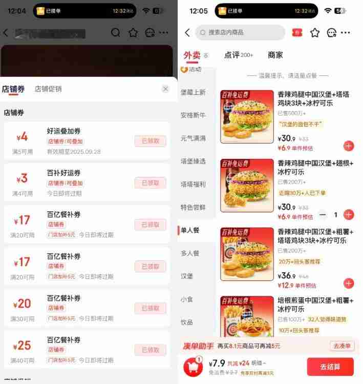 3、叠加使用!做到30-24亓哈!还有正新鸡排这些店都可以!这价格无敌了~