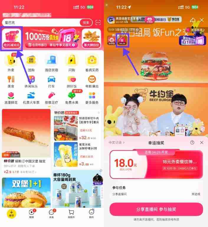 美团每20分钟抽18亓外卖神券