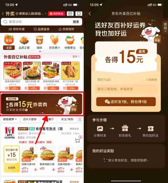 京东搜索“秒送补贴888”->点横幅进入->分享好友 均可得16亓外卖券 和 2-1亓叠加券,就是点外卖立减17亓