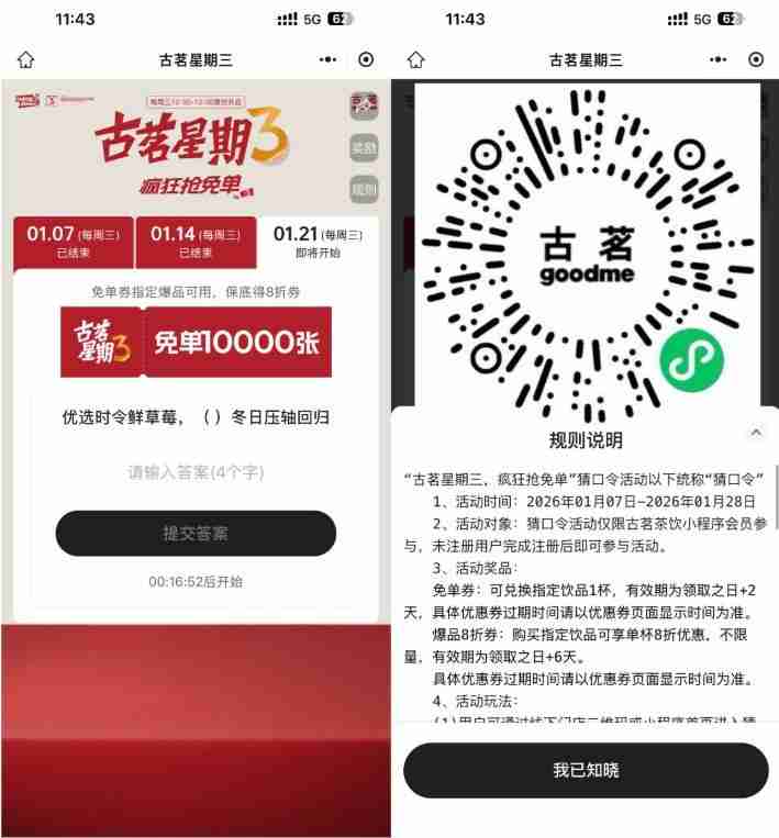 - 01-18 京东外卖今天整点抢0.01亓奶茶