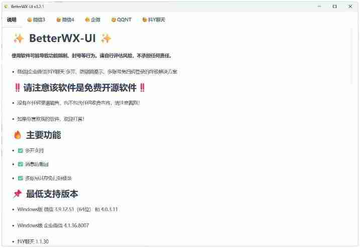 - 02-10 微信QQ抖音防撤回 BetterWX-UI v3.2.1