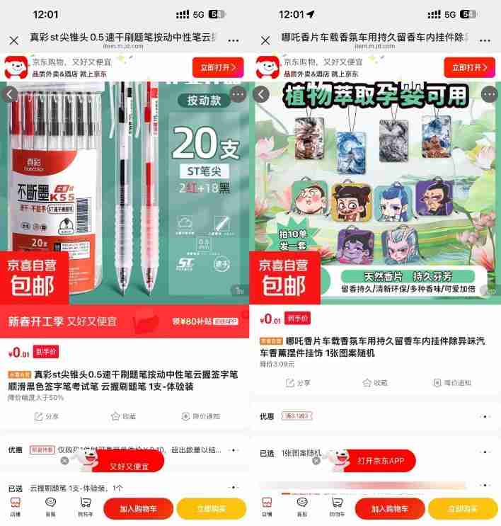 京东0.1撸笔/香片/抽纸/拖鞋