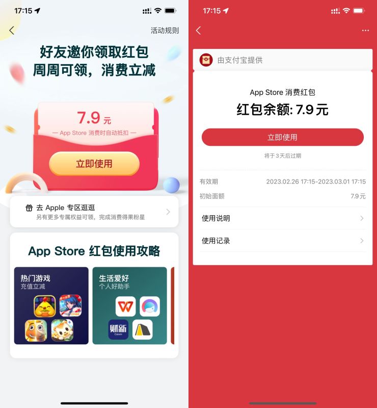 支付宝领AppStore最高10元红包