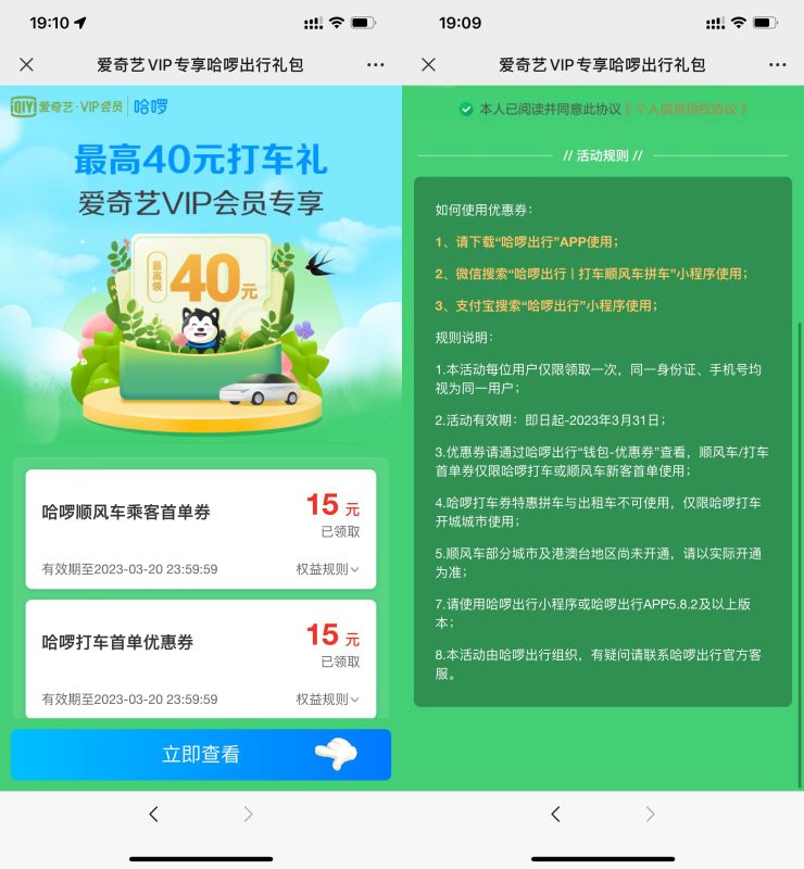 哈啰打车领取15元无门槛打车券