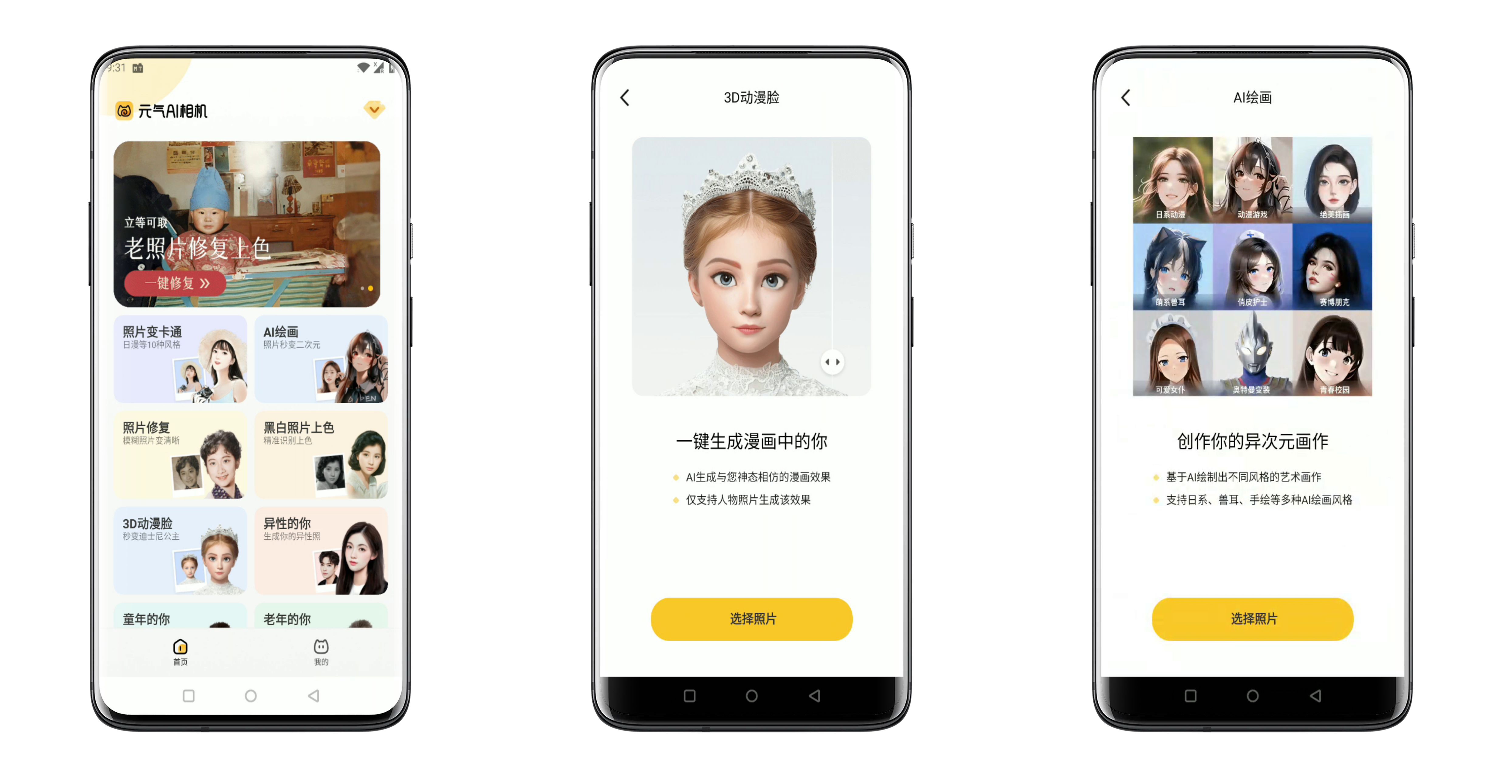 元气AI相机 支持动漫脸修复老照片等一键操作