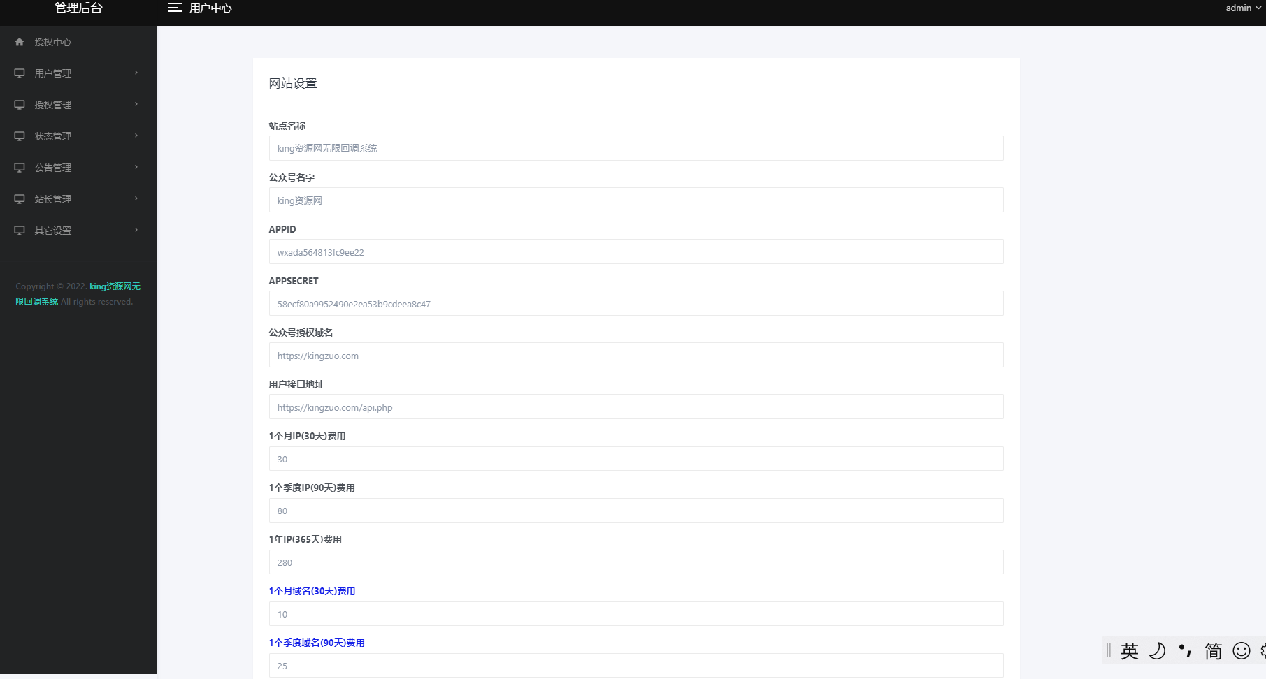 5.后台地址域名/admin 账号admin 密码123456