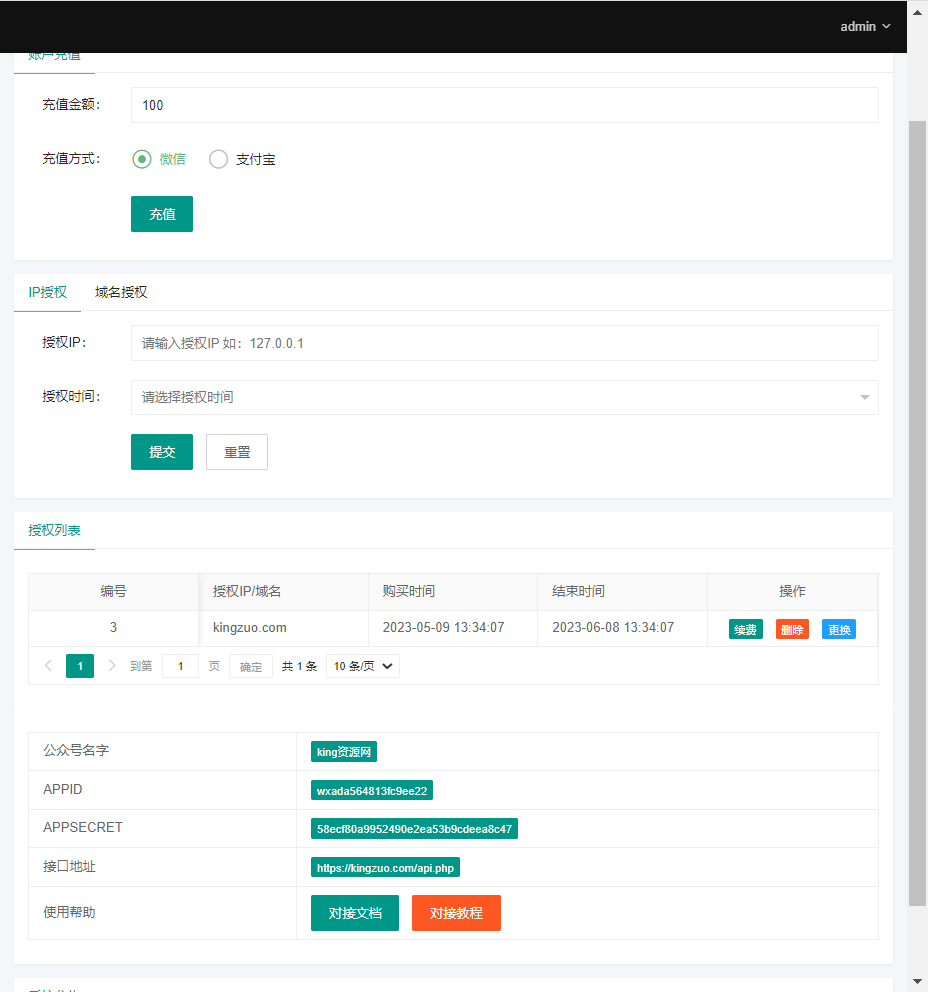 亲测修复了很多BUG,目前支持对接易支付,支持用户自助充值,自助购买授权,支持自助更换授权,支持自助续费授权。