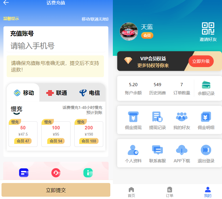 一款全新的H5充值系统,支持自定义首页和充值页面,可灵活对接其他上游渠道接口,基于thinkphp框架开发,支持三级分销,并且同时也开源分享。系统采用MVC结构,前端使用HTML5+CSS3+JavaScript进行开发,后端使用PHP语言编写。本系统具有高并发性、高可用性和高安全性等特点,支持分布式部署。选择我们的系统,您可以灵活自定义页面,选择多种支付方式,并且系统采用AES加密算法确保数据传输与存储的安全,并内置防刷机制。
