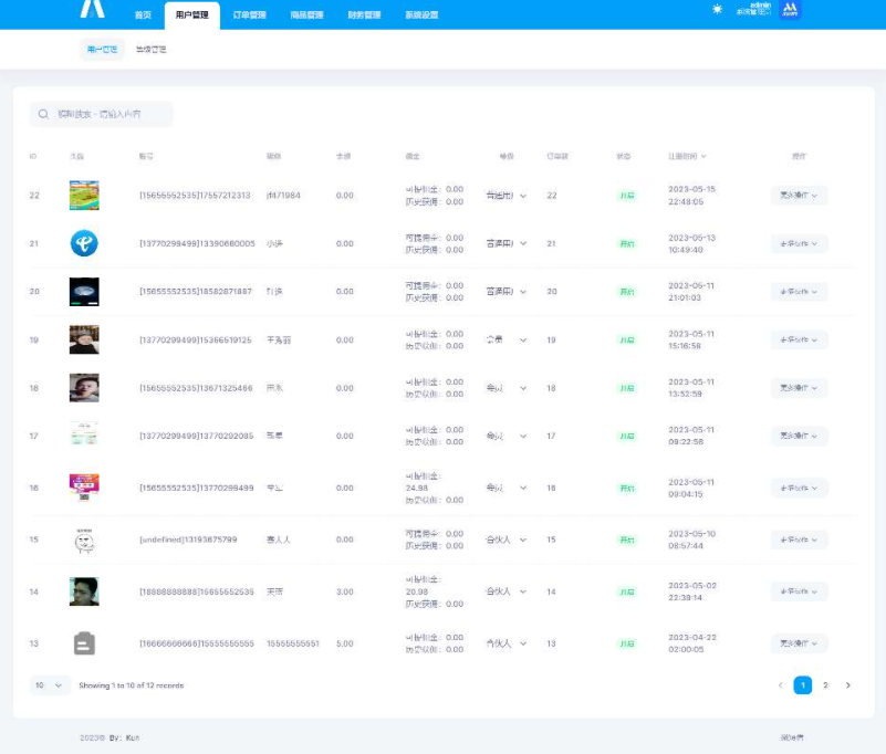 5.登录地址:/admin 账号:admin 密码:123456 前端登录演示账号密码:18888888888