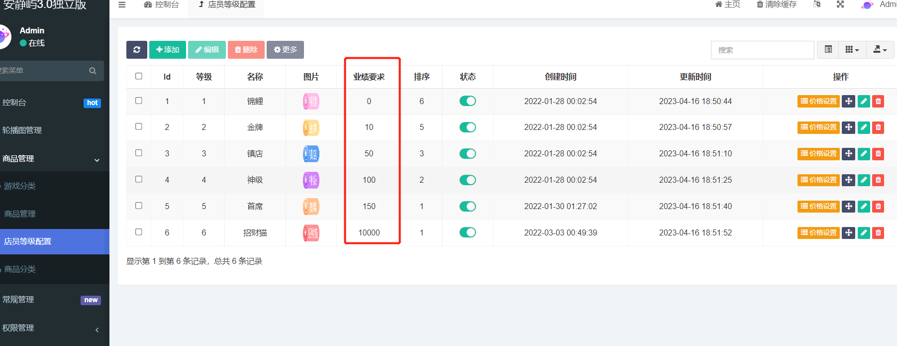 5.增加店员等级不同,可接单的价格不同