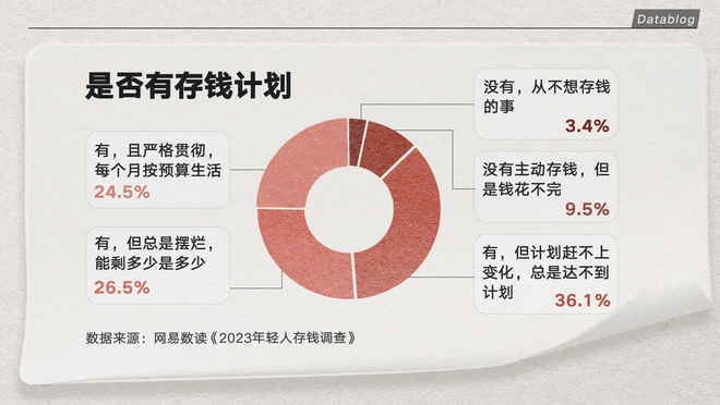 调查显示,设置存钱计划已经成为了当代人的生活标配,只有 12.9% 的人没有存钱的打算,还有四分之一的人正在严格贯彻着自己的储蓄计划。