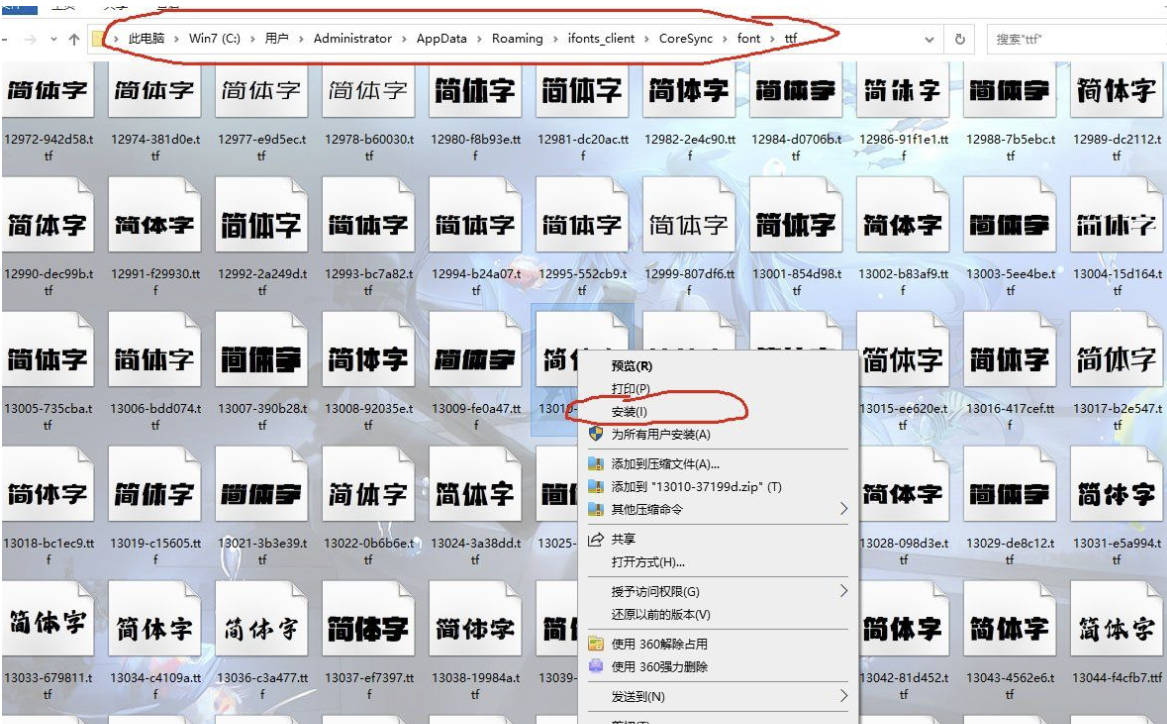 win10的缓存目录C:\Users\Administrator\AppData\Roaming\ifonts_client\CoreSync\font\ttf