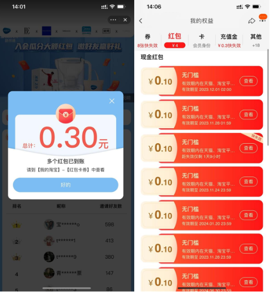 淘宝入会领多个通用购物红包