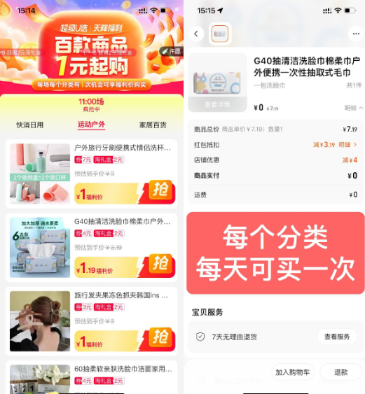 淘宝天降福利1元撸实物包邮