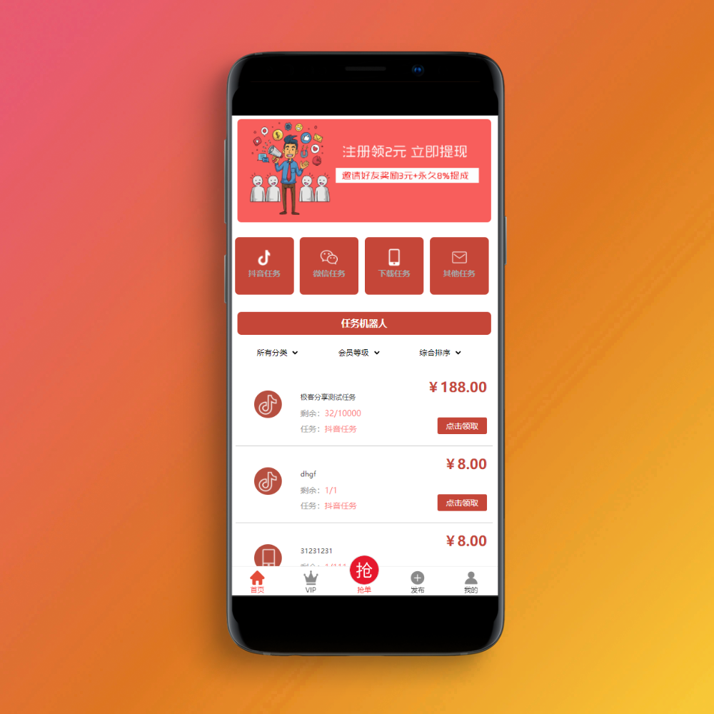 抖音在线点赞任务发布接单运营平台PHP网站源码 多个支付通道+分级会员制度