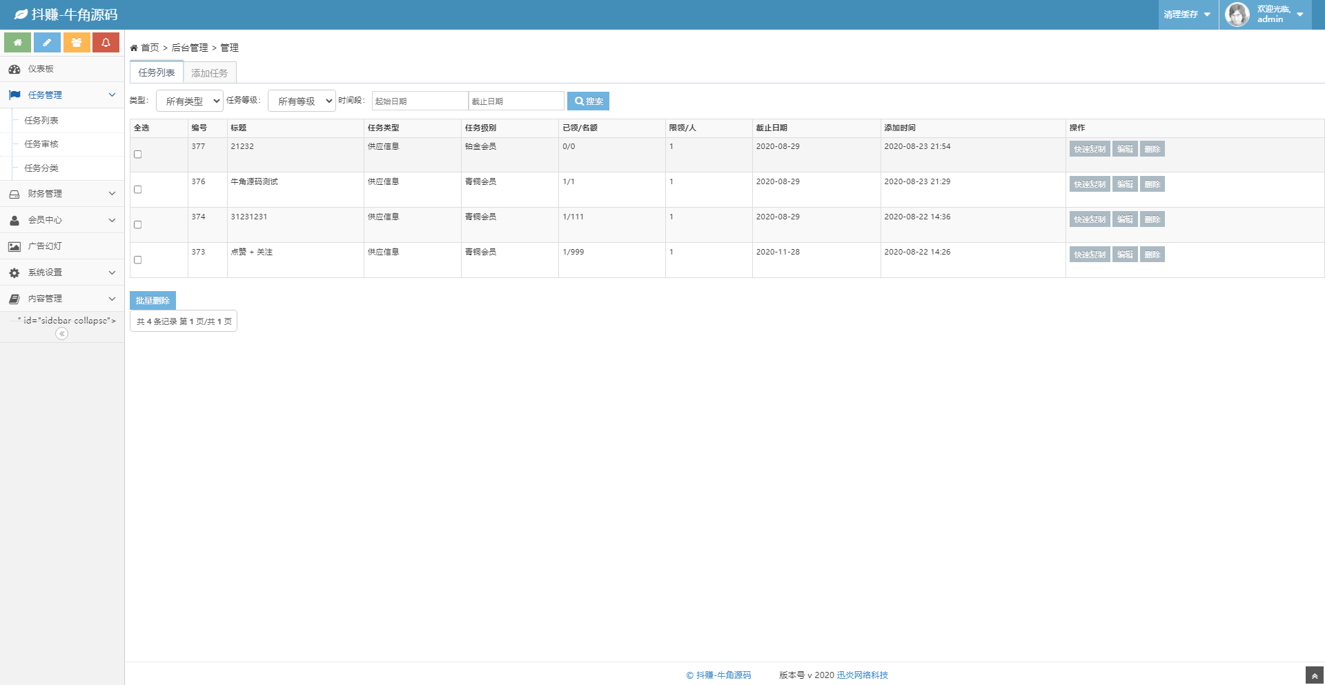 5、不同级别会员使用机器人做的任务对应不同等级会员任务。