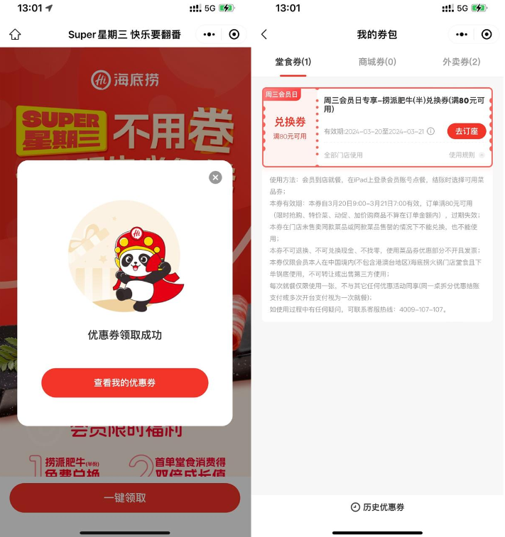 海底捞周三领半份肥牛兑换券