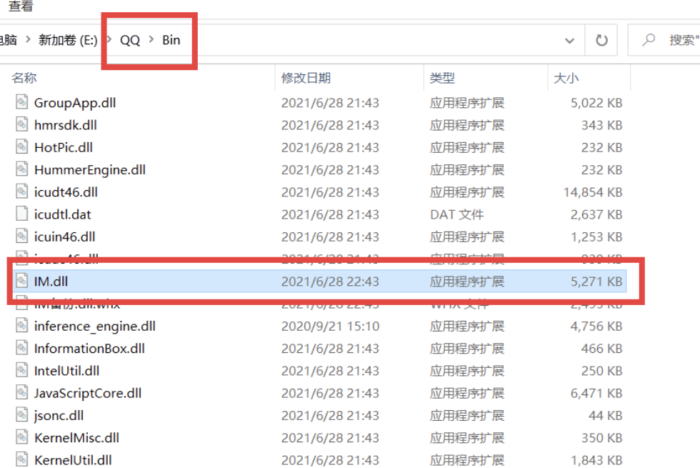 替换方法:找到QQ文件夹 QQ/Bin 替换掉IM.dll