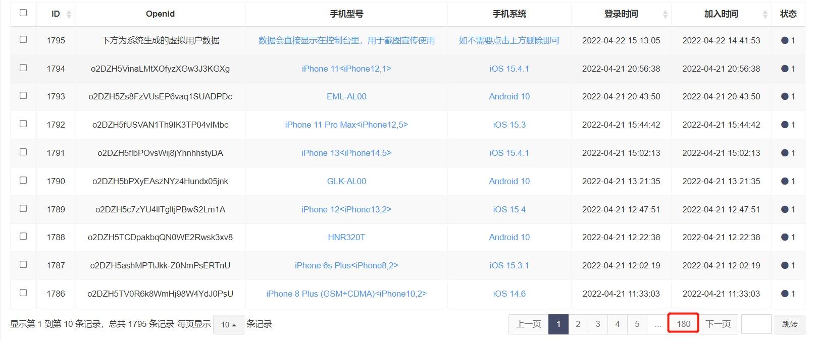 自带虚拟会员数据,用于宣传使用