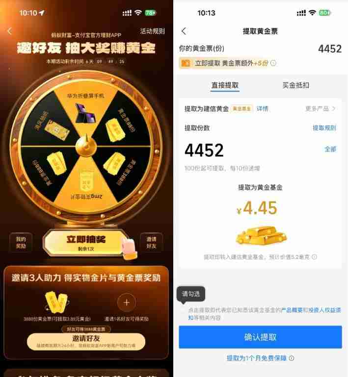 支付宝每人必得4亓以上黄金