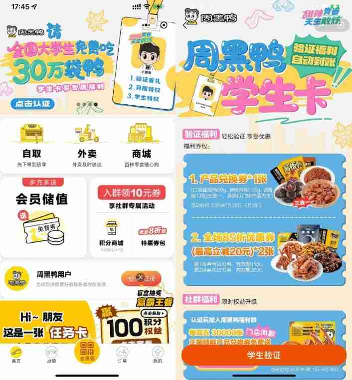 周黑鸭学生认证领取免费菜品