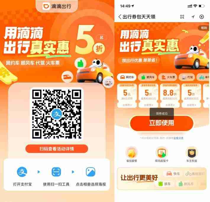 支付宝APP扫码->不常有的号基本上都有9-5亓券,自己去换号试试哈