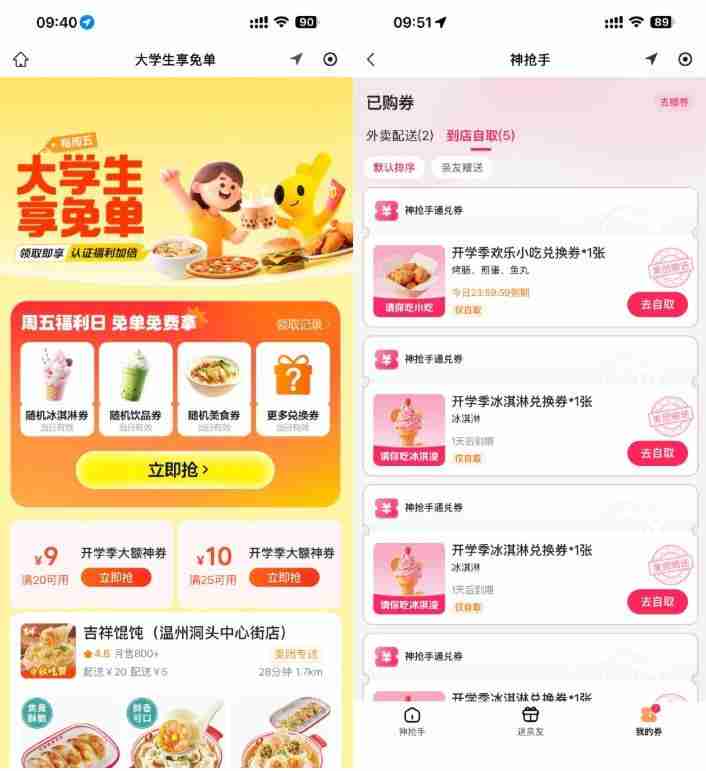 微信打开活动->直接领饮品/冰淇淋/美食随机免单券,之前认证过的上