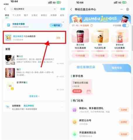 移动云盘周五神券日兑奶茶券