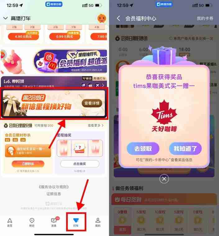 高德地图里程抽奶茶券或会员