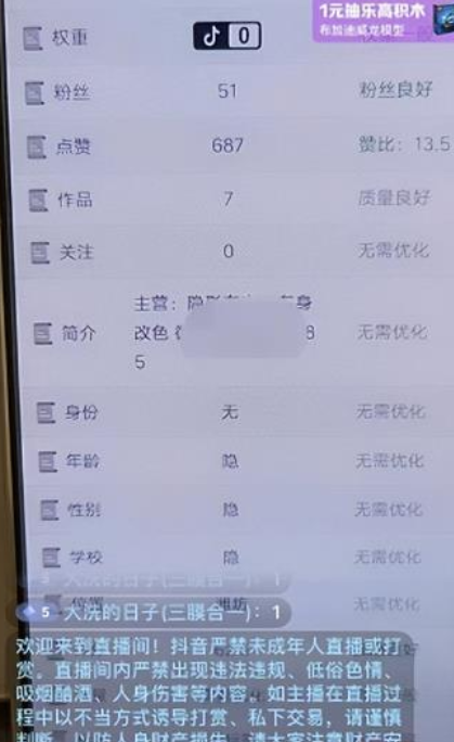 最近这两天还比较爆火,操作这个副业还是比较简单的,准备一个可以开播的账号,千粉实名即可,账号名称、简介、头像等优化下,改成检测相关的,或者某某说抖音、某某说短视频等。准备两台手机,一台直播,一台打开检测网站出镜,展示检测结果,不需要真人出镜。