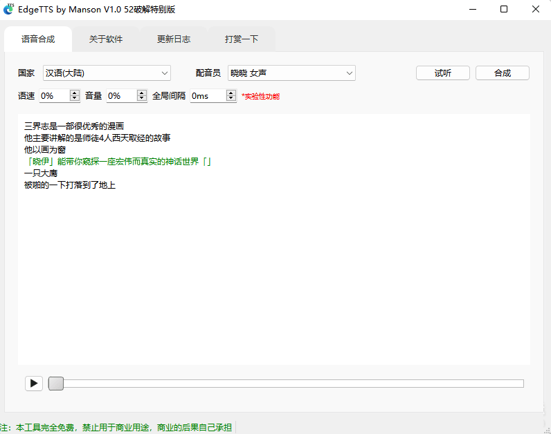 支持多人配音、全局间隔、免费微软配音工具